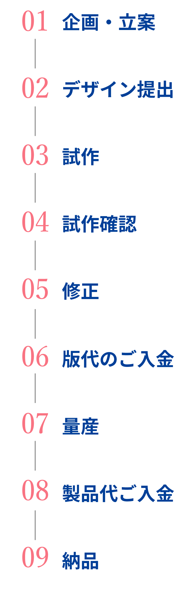例えば、2,000個以下の場合は約2ヶ月後となりますが、2,000個を超える場合はスケジュール調整が入るため2ヶ月以上をお時間をいただいております。詳しくはお問い合わせください。